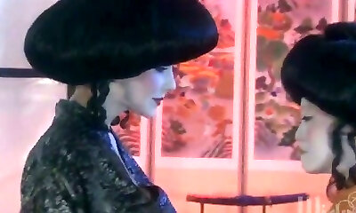 Two chicks in Japanese costumes go wild