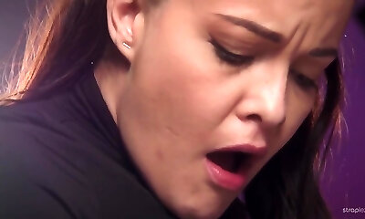Passionate lesbo Jeze Belle uses strapon to please her girlfriend
