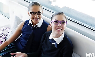 Interrupting the studies as the blonde sapphic introduced the strapon in the mix up