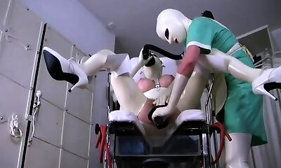 Lesbos in rubber gloves licking bodies