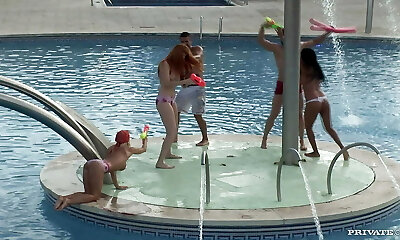 Horny teeny honeypot orgy by the pool